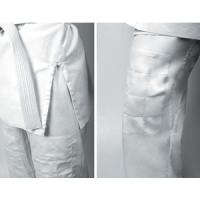組んだ相手の力に負けない強さ(上衣)と足さばきを妨げない薄さや軽さ(下衣)を追求した柔道衣。鮮やかな投げ技や着実に 「一本」に近づける寝技まで、幅広く対応できる機能性を実現 しました。着るたびに気持ちが引き締まり、勝利を呼ぶテクニック を支えます。タフさを誇りながら、選手が柔軟な動きがおこなえる ように仕上げられました。下衣はとても柔らかく、巧みな足さばきを サポートします。カットが入ったサイド部分も丁寧な縫製で仕立てられて、耐久性も十分です。