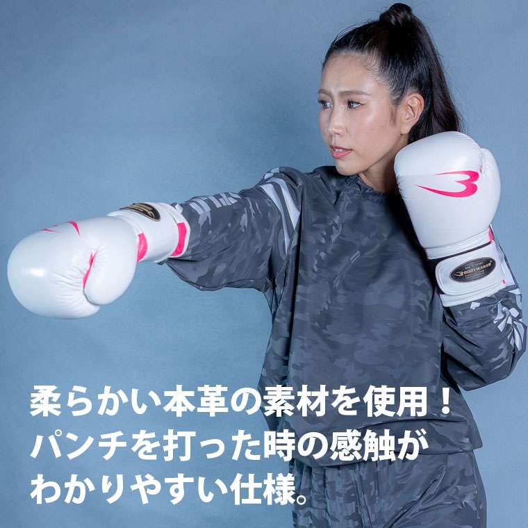 練習・試合時のグローブとして作られた本革グローブです。柔らかい本革の素材を使用しているトレーニング向け用のスパーリンググローブでパンチを打った時の感触がわかりやすい仕様です。