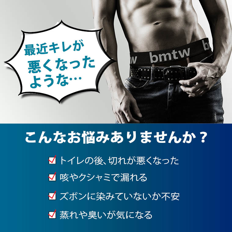 悩みを解決するパンツ。機能性だけではなく、スタイリッシュでカッコよさを併せもったデザインだから大丈夫!実はこのパンツ、尿漏れ・尿染み防止パンツなんです。
