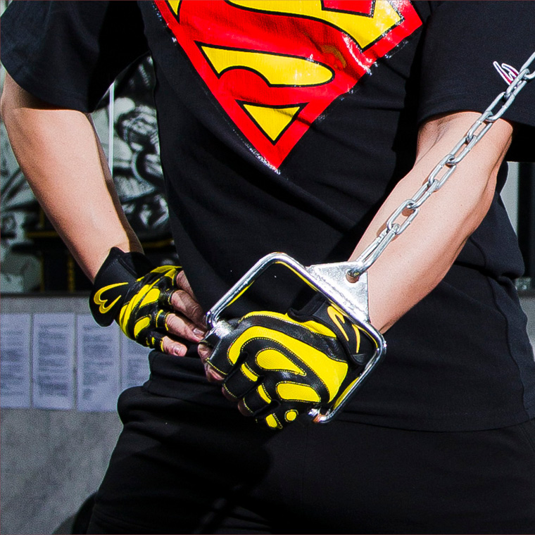 トレーニンググローブでしっかりとグリップを安定させる必要があります。グリップを安定させることでようやく意識したい部位に集中したトレーニングへと繋がります。