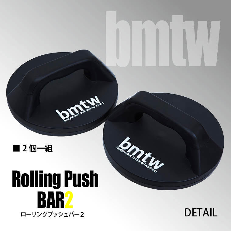普通のプッシュアップではもの足りない方にぴったり。グリップ部分が回転式になっているプッシュバーです。運動中は常に姿勢を安定させることが要求されるので、通常プッシュアップで鍛えられる腕や胸の筋肉だけでなく、さまざまな部分の筋肉が刺激されます。