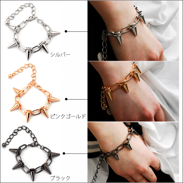 ブレスレット 全3色 スパイク チェーン V系 ビジュアル系 パンク ロック メンズアクセサリー