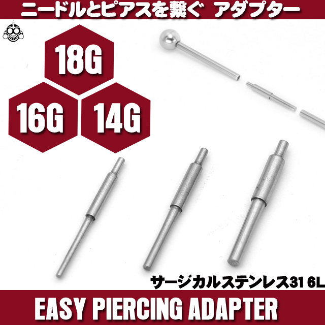 | 素材 | サージカルステンレス316L | | サイズ | ゲージサイズ18G用/16G用/14G用 | | 特徴 | ※アダプターのみの販売になります。コレは便利!!穴を開ける時、ピアスがはまらずピアスが入りにくかった事ありませんか?このアダプターを使えばホールを傷めにくくスムーズにピアスが入ります。拡張器とこのアダプターとピアスバーベルをくっつけて使います。※ピアスはインターナルネジ(内ネジ)タイプに限ります。※アダプターのみの販売です。 | | 注意 | 写真はできる限り現品を再現するよう心がけておりますが、お客様のモニター環境により商品のイメージと異なる場合がございます。ご了承ください。※1個売りです。 | |