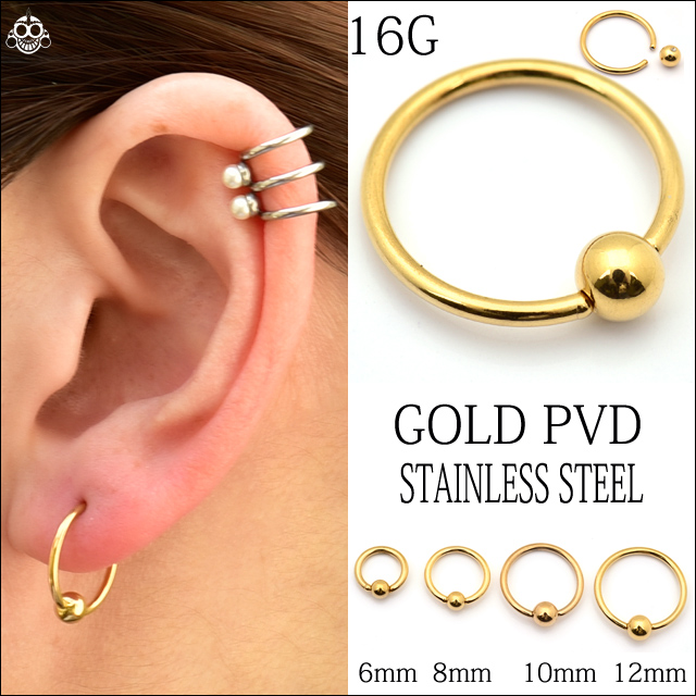 | 素材 | サージカルステンレス316LにゴールドPVD | | サイズ | ゲージサイズ16G 内径サイズ選べます ボールサイズ3mm(内径6/8)ボールサイズ4mm(内径10/12) | | 特徴 | シンプルなリングピアスですが高級感あるゴールドカラーです。色を変えるだけでもかなりイメチェン出来ますょ。ロブ、へリックス、ロック(ルーク)、トラガス、ニップル等々いろんな部位に着けれます。※SALE品は不良品以外、返品交換不可です。 | | 注意 | 写真はできる限り現品を再現するよう心がけておりますが、お客様のモニター環境により商品のイメージと異なる場合がございます。ご了承ください。※1個売りです。 | |