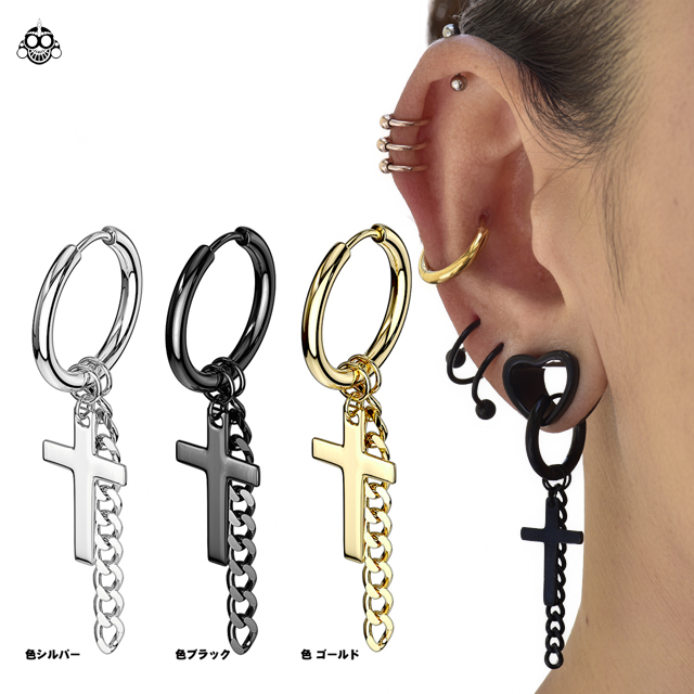 | 特徴 | 装着すると10Gぐらいに拡張しているように見せられて、いつもと違ったリングピアスコーデを楽しめますよ!クロスとチェーンのチャームが付き、動くたびに揺れるので存在感があります。チャームは取り外しができるので、1つだけ付けたり、全部外してシンプルにもお使いいただけます。カチッと開閉出来るので着脱も簡単ですよ。 |