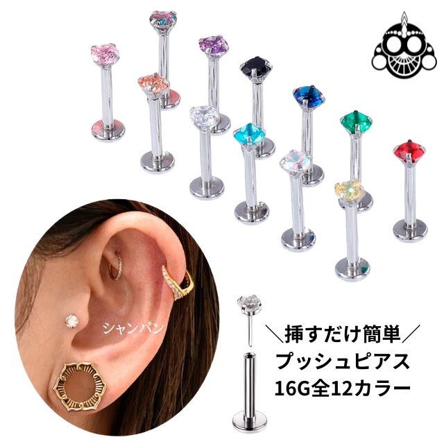 | 特徴 | カラバリ豊富な12色カラー、3サイズのピアスは人気の立爪タイプなのでストーンが際立ち輝きがとても綺麗です。挿すだけ簡単に着けれるのでネイルされている方や着けにくい部位、不器用さんにもお勧めです。ロブやトラガス、ヘリックス、インナーコンク、アウターコンク、アンチトラガス、フォワードヘリックスなど軟骨ピアスにお勧めです。※ラブレットとストーンパーツはセットになっておりますので他のバーベルとは合いません、予めご了承ください。 |