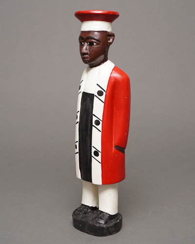 コロン人形はコートジボワールの植民地時代に西洋からさまざまな職業やスポーツ、ファッションなどが伝えられ、それを模して作られた木彫りの人形です。
