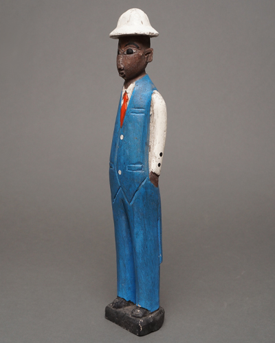 アフリカ コートジボワール コロン人形 Lサイズ No.30 水色のビジネスマン 木彫り 立像 アフリカ雑貨 彫刻