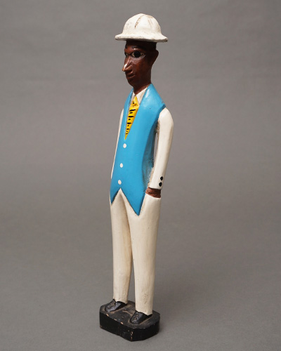 アフリカ コートジボワール コロン人形 Mサイズ No.38 水色ベストの紳士 木彫り 立像 アフリカ雑貨 彫刻