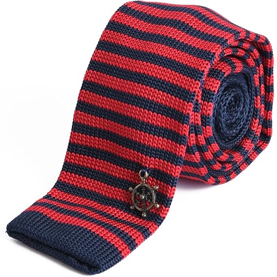 【RACHEL】レイチェル ニットタイ ナロータイ スリムネクタイ ウォッシャブル スクエアエンド ワンポイント チャーム付き F