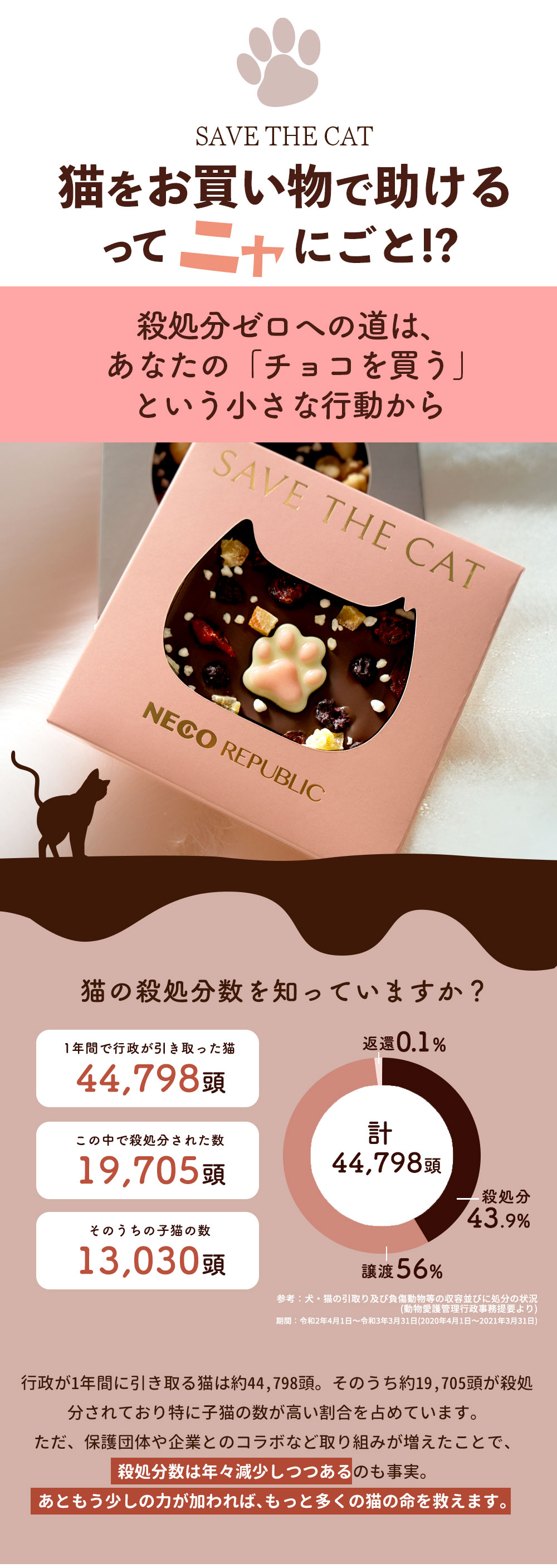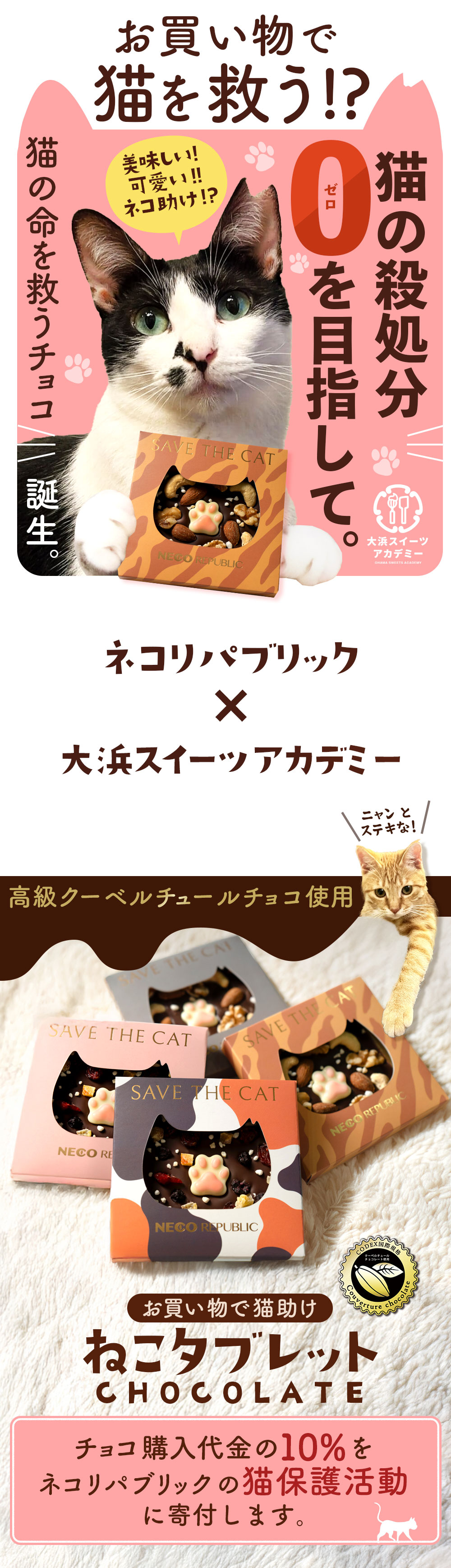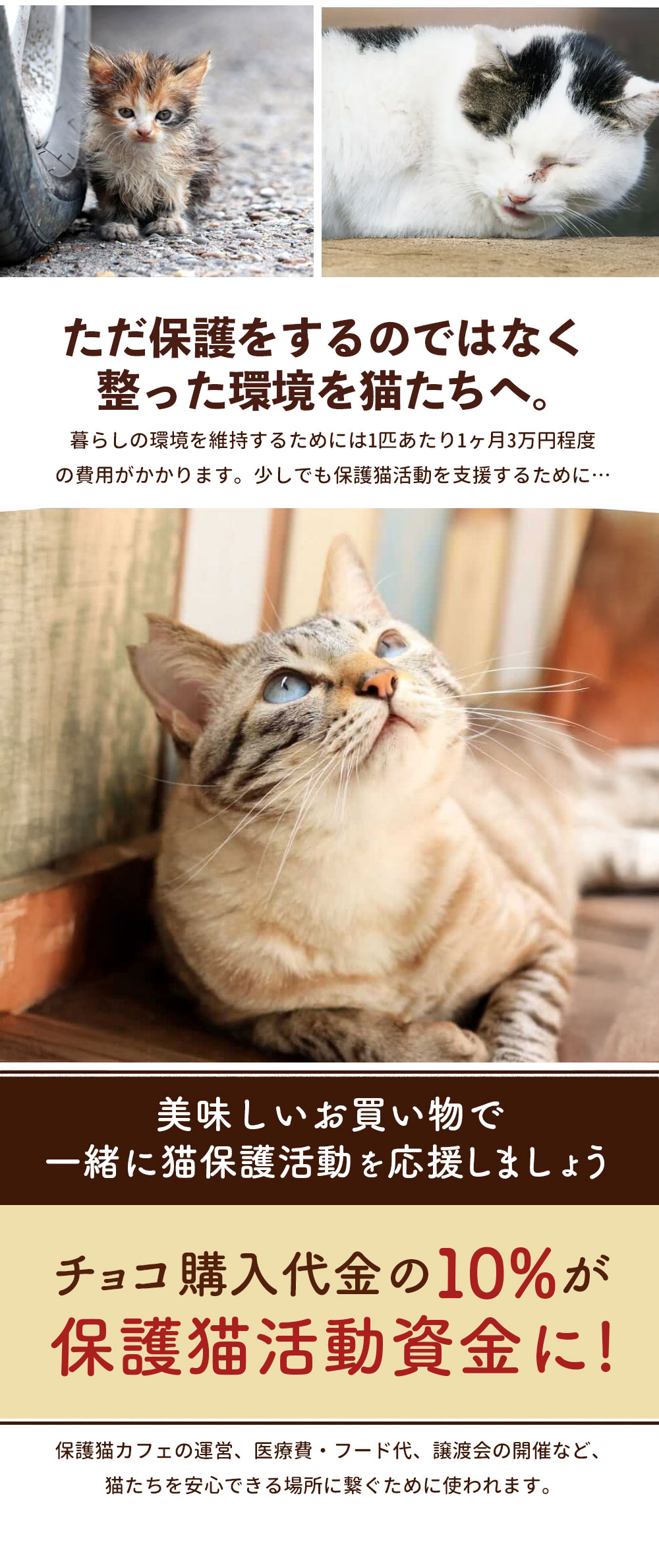 チョコ購入代金の10%を猫パブリックの『猫保護活動』に寄付いたします。