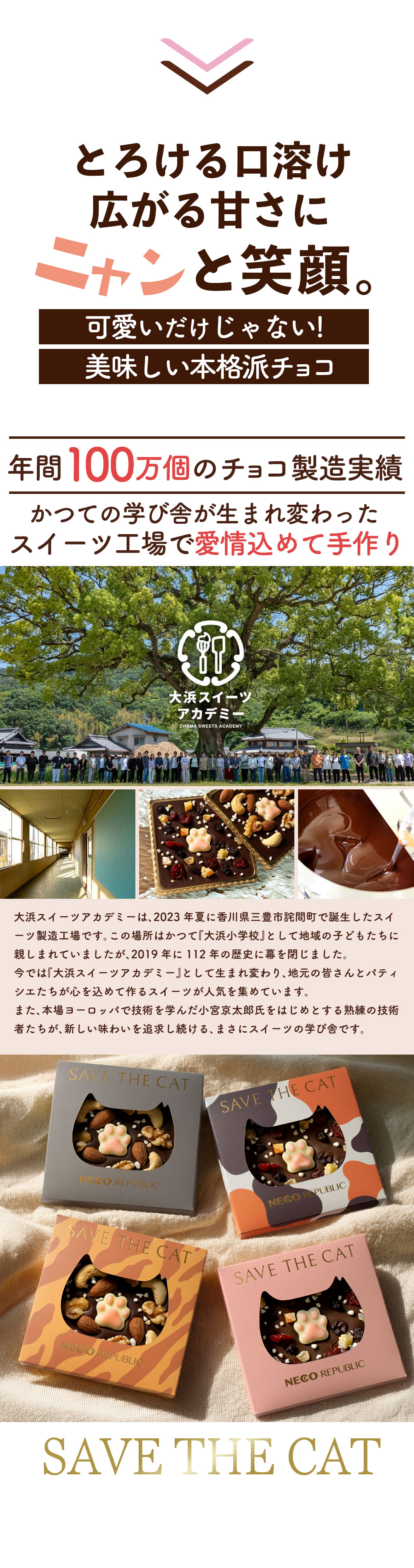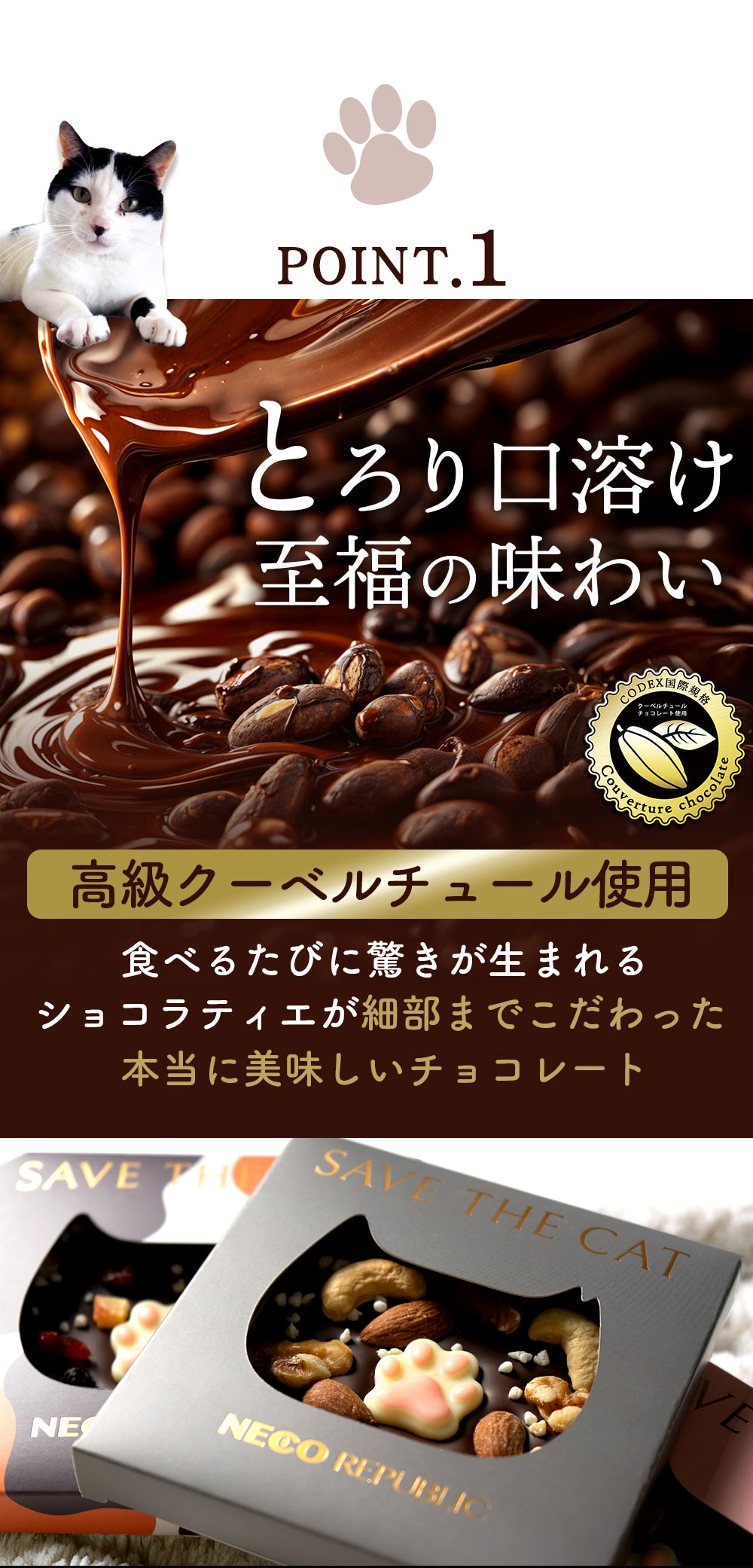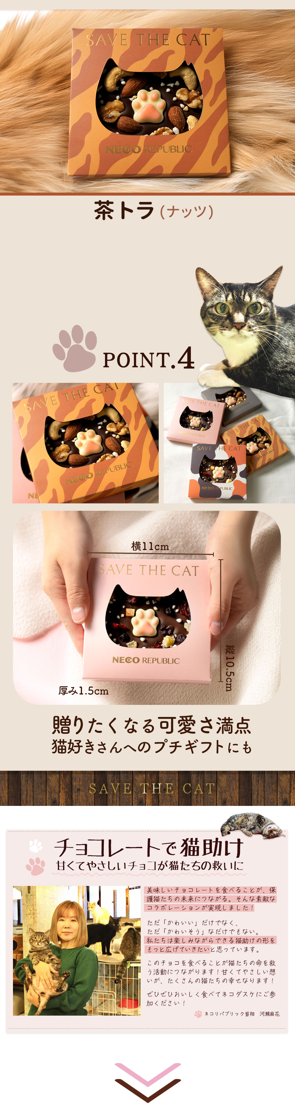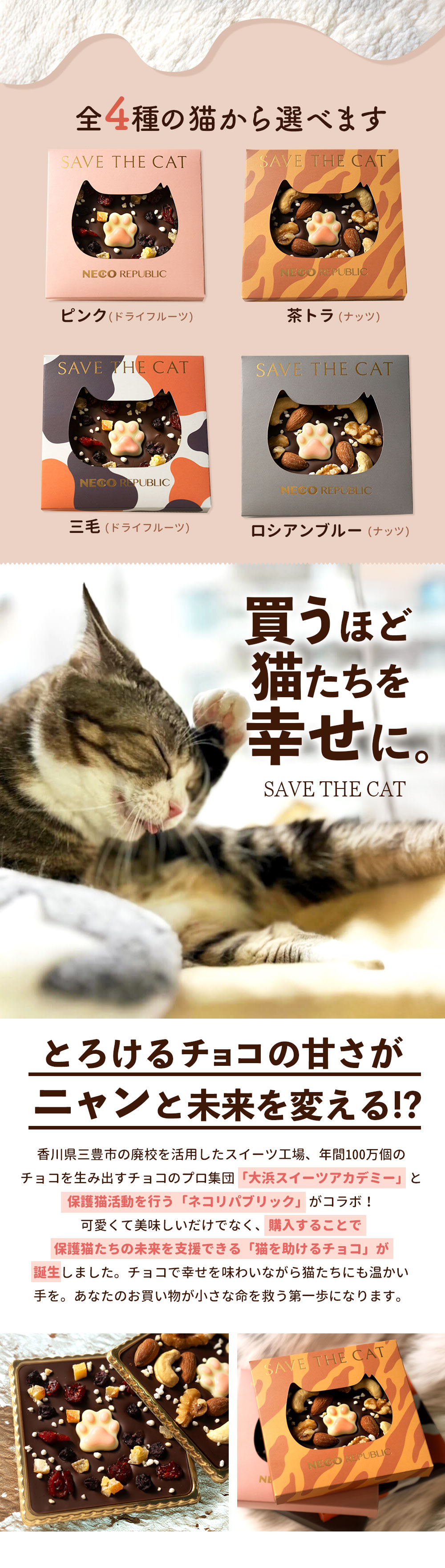 チョコ購入代金の10%を猫パブリックの『猫保護活動』に寄付いたします。