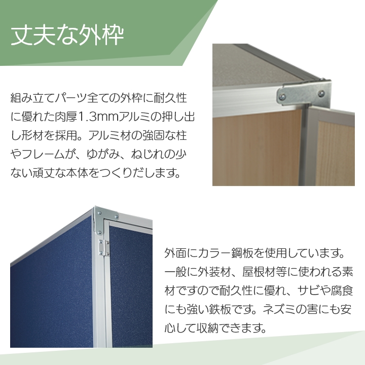 外面材:カラー鋼板(アルミ亜鉛合金めっき鋼板)板厚0.27mm