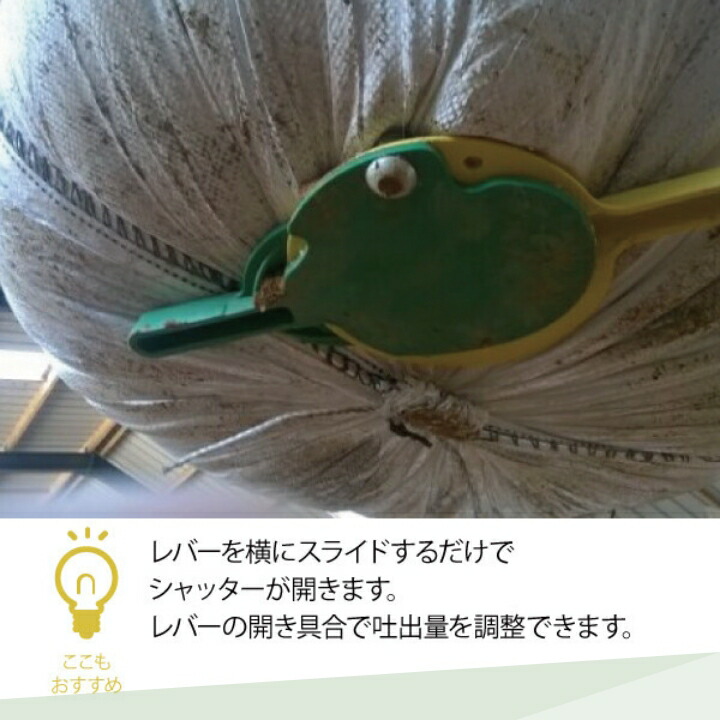 排出口なしフレコン(穴なしフレコン)の底部に挿すだけで、肥料の排出はもちろん吐出量のコントロールをすることができます。