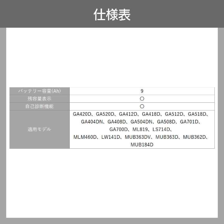 バッテリー容量(Ah):9.0