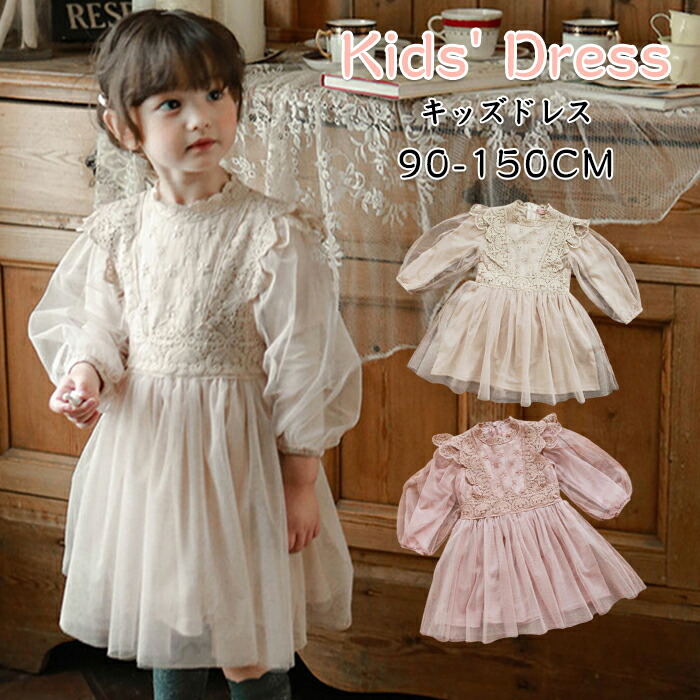 商品名:キッズ ドレス 女の子 チュール フォーマル ワンピース 長袖 レース プリンセス 子供服 結婚式 発表会 誕生日 七五三 記念撮影 小学生 姉妹コーデ お揃い ベージュ ピンク パフスリーブ チュールスカート かわいい おしゃれ 春 秋 冬 パーティー 卒園式