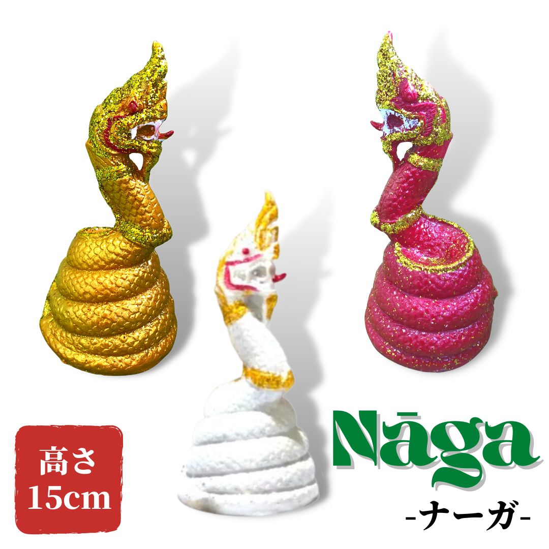 蛇神 ナーガ 像 15cm ホワイト ゴールド レッド タイ 神様 Naga アジア 雑貨 インテリア オブジェ 置物 聖なる蛇 開運 仏像 送料無料