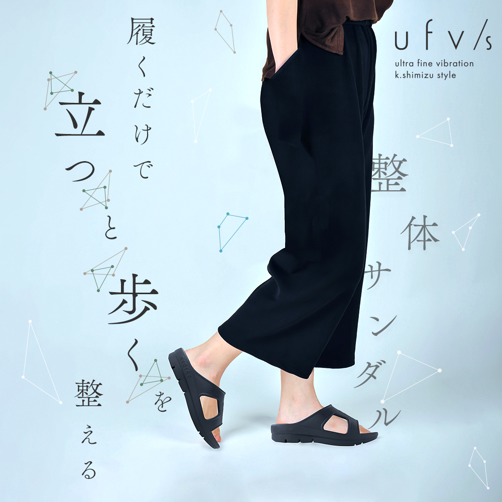 | 商品について | 履くことで日常生活を 整体する靴下「AIRISE」 で知られる理学療法士[清水賢二]氏と、 大人気「ufvバスパウダー」でおなじみの、 健やかな巡りに着目した、 超・微振動(ufv)加工を施した サロンアイテムブランド [ufv]がコラボレーション。 疲れる前に正す プレリカバーという考え方で、 全身にアプローチする 「整体サンダル」です。 |