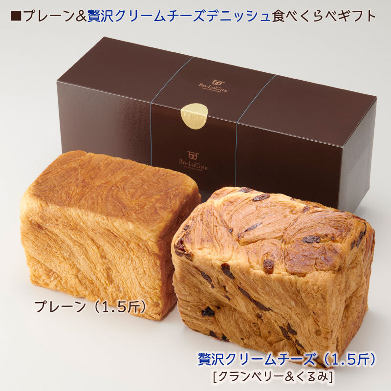 デニッシュ食パン: 1.5斤(プレーン)×1個 1.5斤(贅沢クリームチーズ)×1個 |