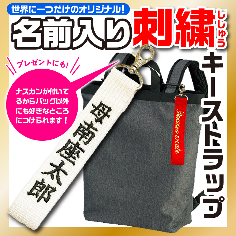 刺繍 ストラップ ネーム タグ キーホルダー 刺しゅう バッグ リュック オリジナル 部活 スポ少