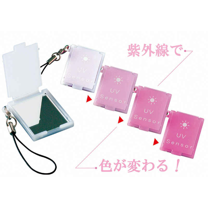 UV(紫外線)の強さによって、色が徐々に変わっていくUVセンサー付きミラーです。