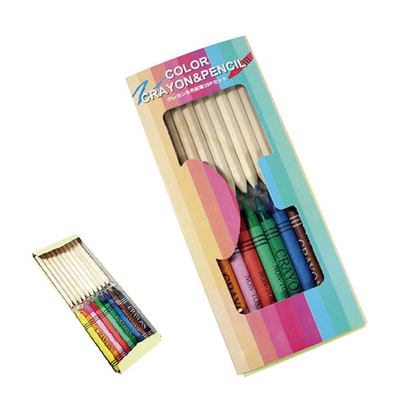 コンパクトサイズのクレヨン(9本)、色鉛筆(10本)が入ったお絵かきに便利なセットです。