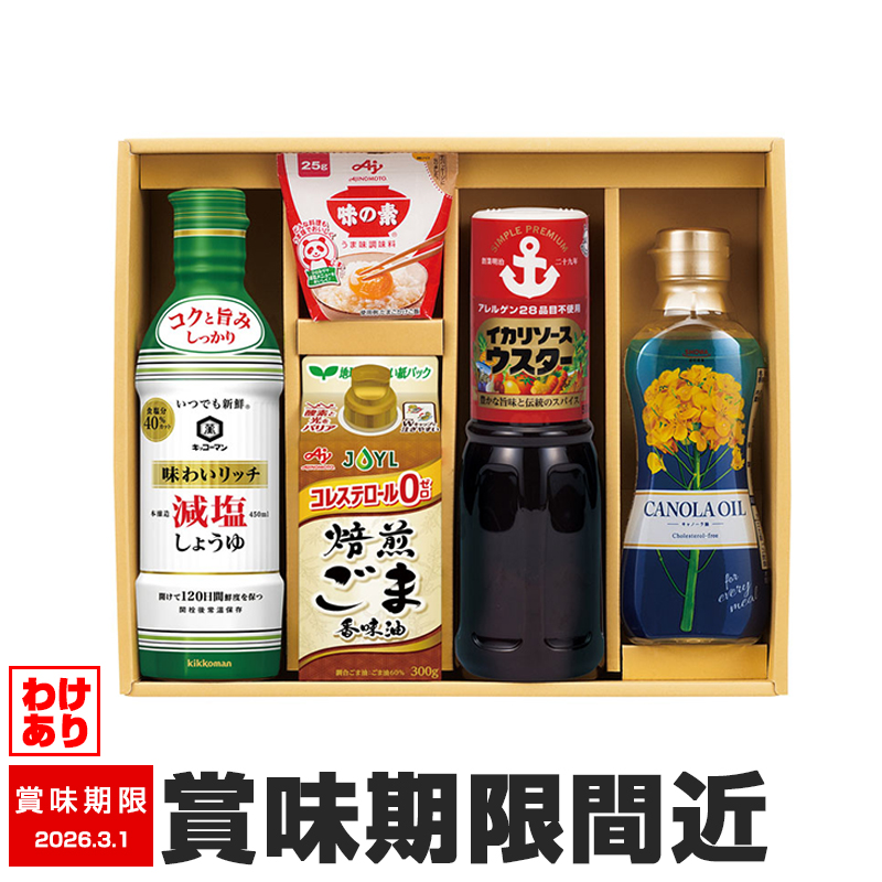 訳あり NEW焙煎ごま油&調味料ギフト BGC-30 しょうゆ ソース 賞味期限間近