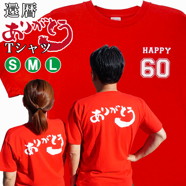 「赤いちゃんちゃんこの代わりに赤いTシャツにしました」と言っても、無地の赤いTシャツではなんだか還暦のお祝いという特別な意味が含まれていないように思えますし、かといってあまりに大きく派手に"還暦"とか"60"などとプリントされているのもちょっと・・・、という気がしたり。