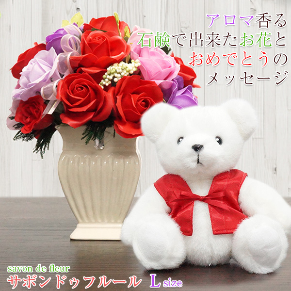 ■サボンドフルール【L】:高さ29cm×幅25cm(花・花瓶含む)
