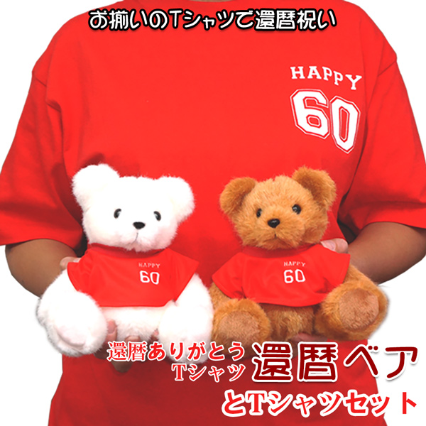 そんな還暦ありがとうTシャツを、今度は還暦ベアにも着せて、お揃いにしました♪