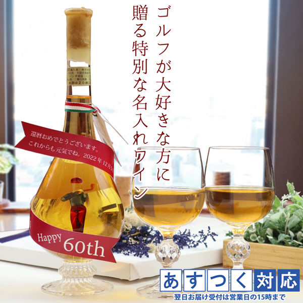 ワインの中にゴルファーが入ったトロフィーのようなボトルの白ワイン