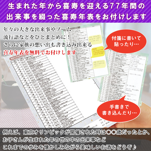 喜寿年表も一緒にお届けします