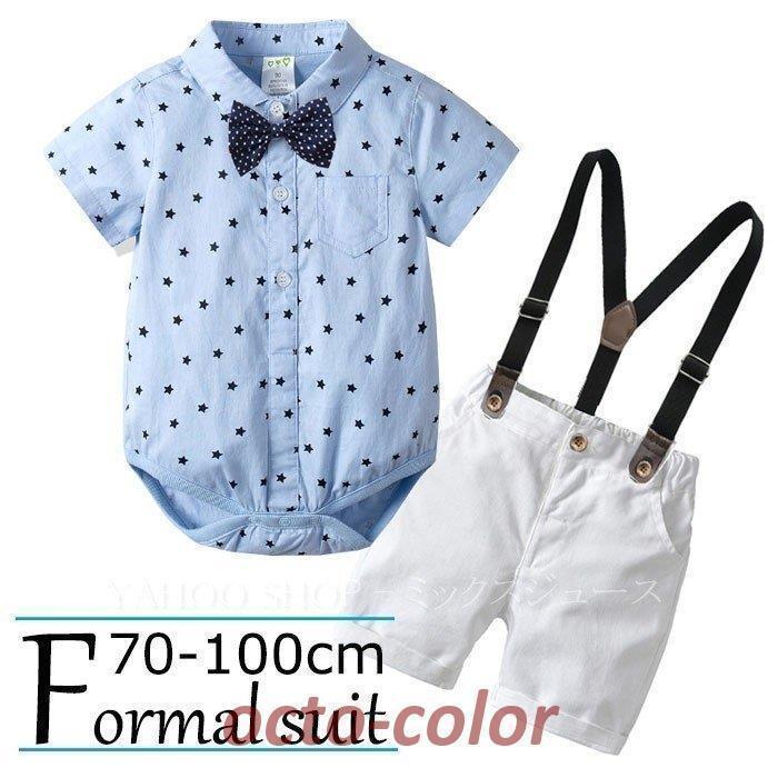 紳士風 ロンパース 星柄 カバーオール 蝶ネクタイ 上下セット おしゃれ 出産祝い 結婚式 誕生日 お宮参り お食い初め 子供服 男の子 ベビー スーツ