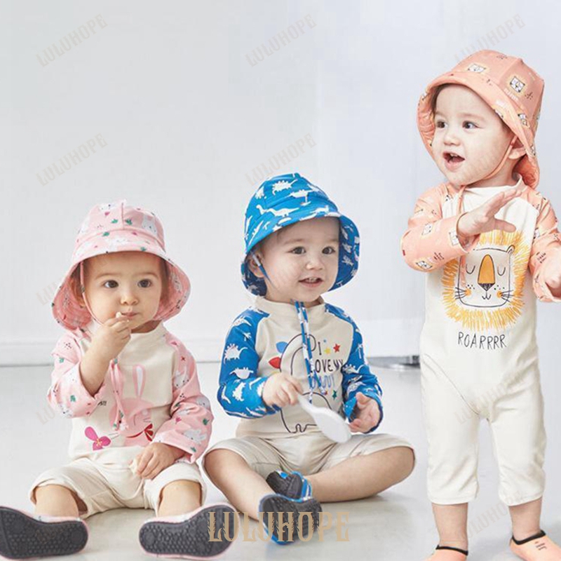 保育園 水着 ベビー 水着80 女の子 ロンパース 赤ちゃん 長袖 ラッシュガード 男の子 UVカット オールインワン スイムウェア 水遊び キャップ付き かわいい