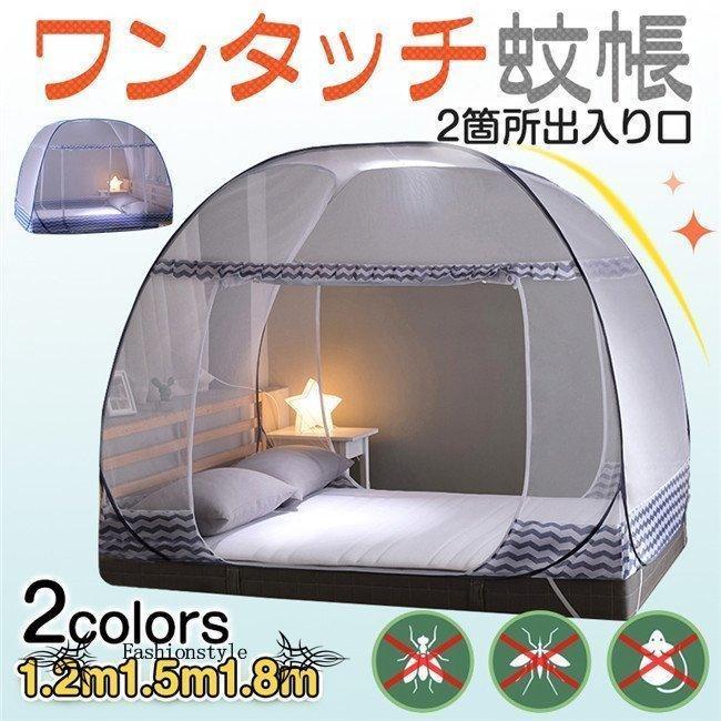 蚊帳 ワンタッチ 底付き 120cm?180cmベッド用 白 ホワイト グレー ブルー かや 蚊 ムカデ 虫除け 折りたたみ ワンタッチ蚊帳 中 3秒組立