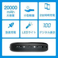 【電熱ベスト使用可】モバイルバッテリー A85 20000mAh大容量 過充電保護 安全保護機能付き 残量表示 2.1A急速充電 LEDライト付き 軽量 超小型 コンパクト