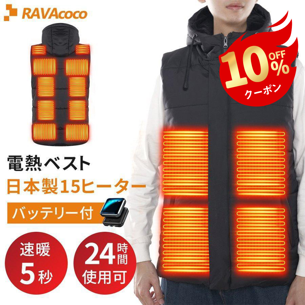 電熱ベスト MJ10 15枚ヒーター フード付き 加熱服 3段階温度調整 バッテリー給電 裏起毛素材 水洗い可能 冬作業服 電熱ジャケット 電熱ウェア 防寒着 男女兼用