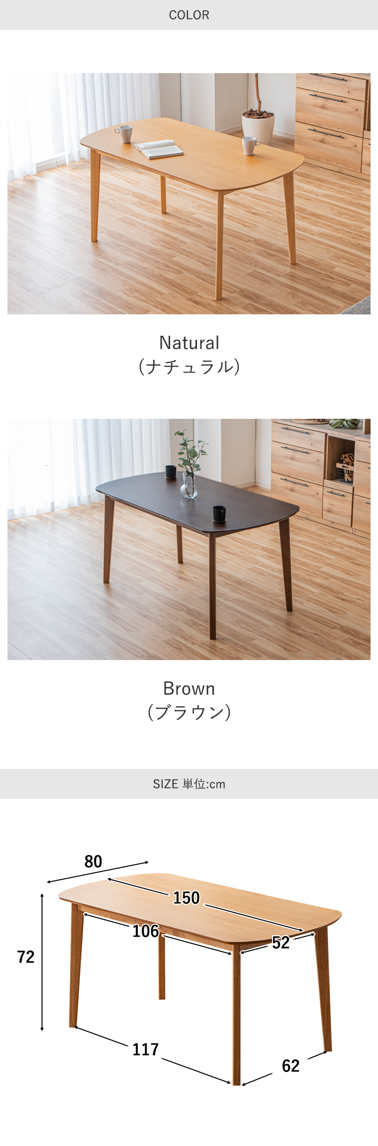 | 材質 | ナチュラル:オーク突板 ブラウン:ウォールナット突板 |