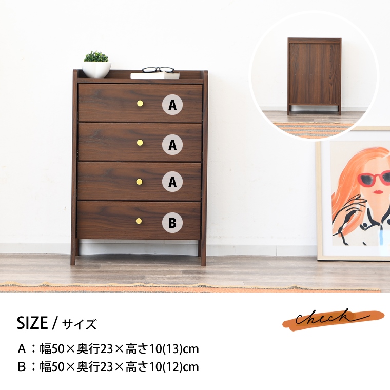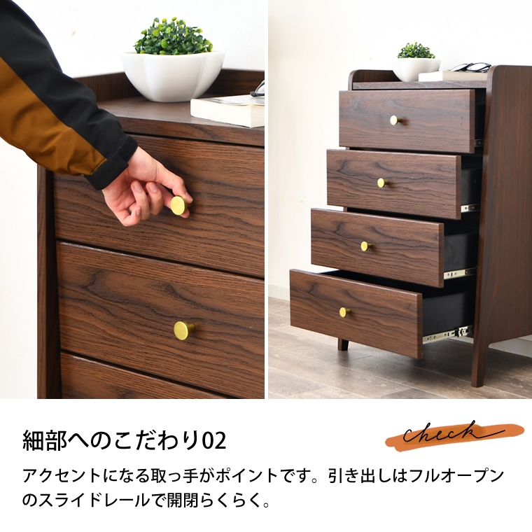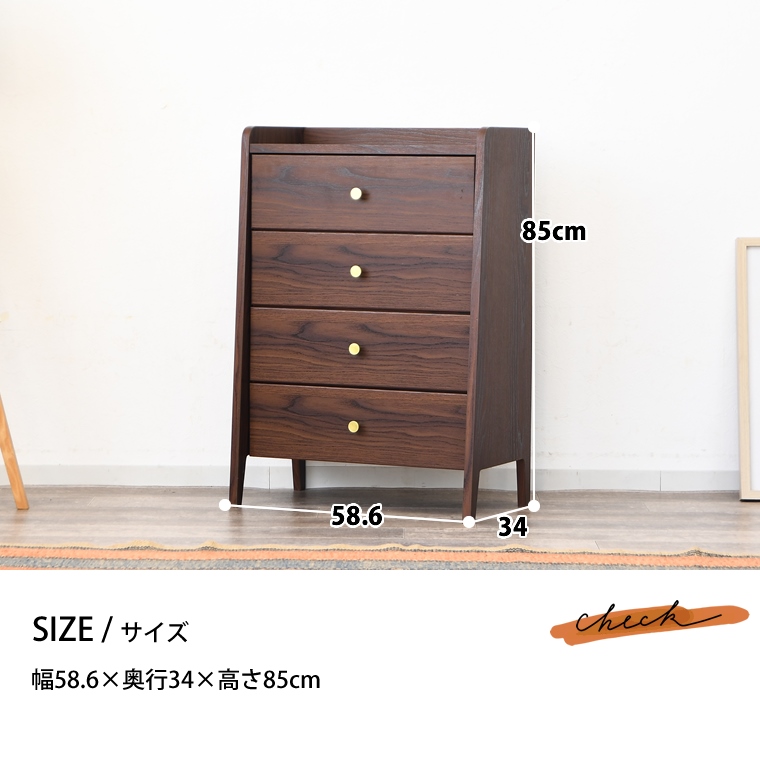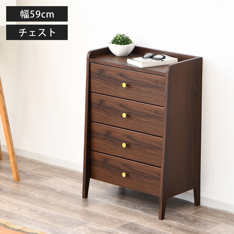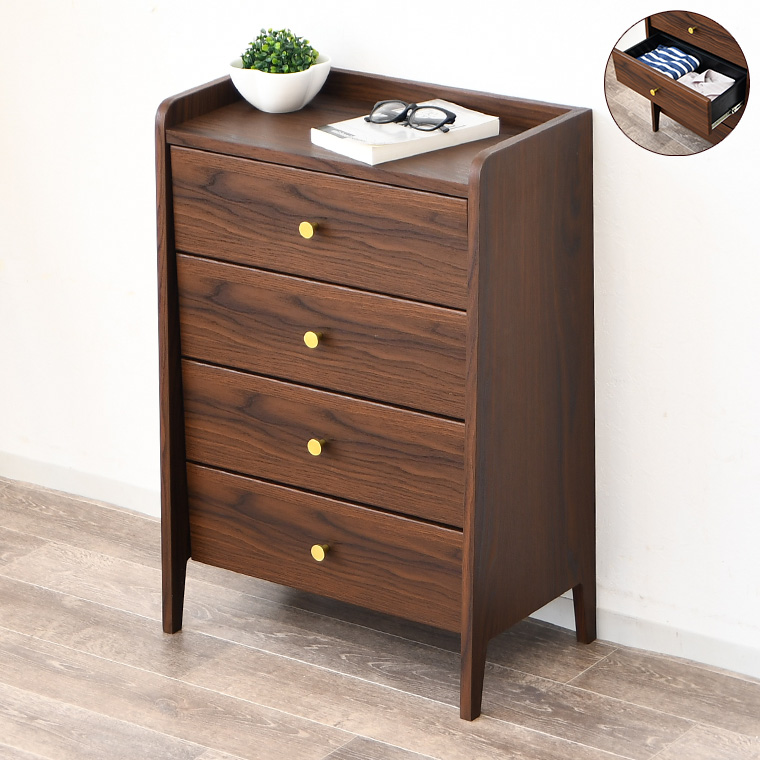 チェスト 幅60 4段 ミニチェスト ミニ 小さい ウォールナット柄 韓国 北欧 モダン 引き出し いっぱい 衣類 洋服 下着 収納 仏壇台 完成品 初売り