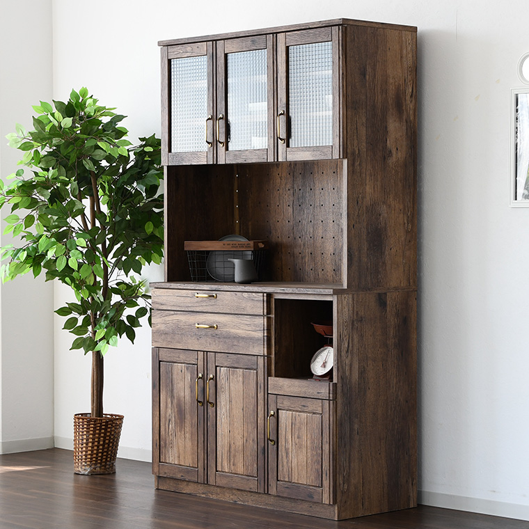 食器棚 ヴィンテージ調 ビンテージ レンジボード キッチンボード 幅105cm レトロ キッチン収納 完成品
