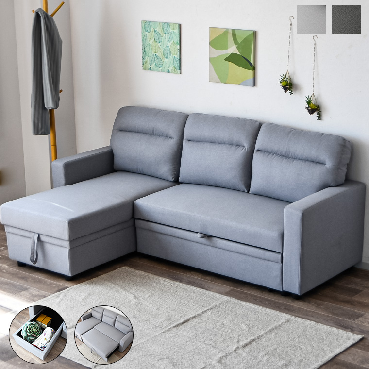 | ・快適さを追求した欲張り多機能ソファ ・カウチソファ+ソファベッド+座面下収納 ・カウチソファやソファベッドになる2WAYソファ ・普段はカウチソファで1人だけのくつろげる空間として使用し、もっと広く使いたい時にはソファベッドに早変わりできるのでシチュエーションや気分に合わせて2通り使い方ができる便利な2WAY ・お部屋がすっきり片付く座面下収納 ・座面下には収納スペースがあり、毛布やクッションなど使用しないときは収納することができます ・跳ね上げ式のため女性でも片手でラクラク開閉です ・左右組み換え可能 ・ソファからベッドに切り替えが簡単 ・ラクラク引き出せるローラー付き ・さらりとした触り心地のファブリック生地 ・生地はファブリックを使用しており優しい触り心地です ・長時間座っていても疲れにくいのがうれしいポイントです ・しっかりとした座り心地で身体を支える ・しっかりとした座り心地がお好みの方にはおすすめ ・座面と背もたれで身体を支えてくれますので、自然と綺麗な姿勢を維持できます | |