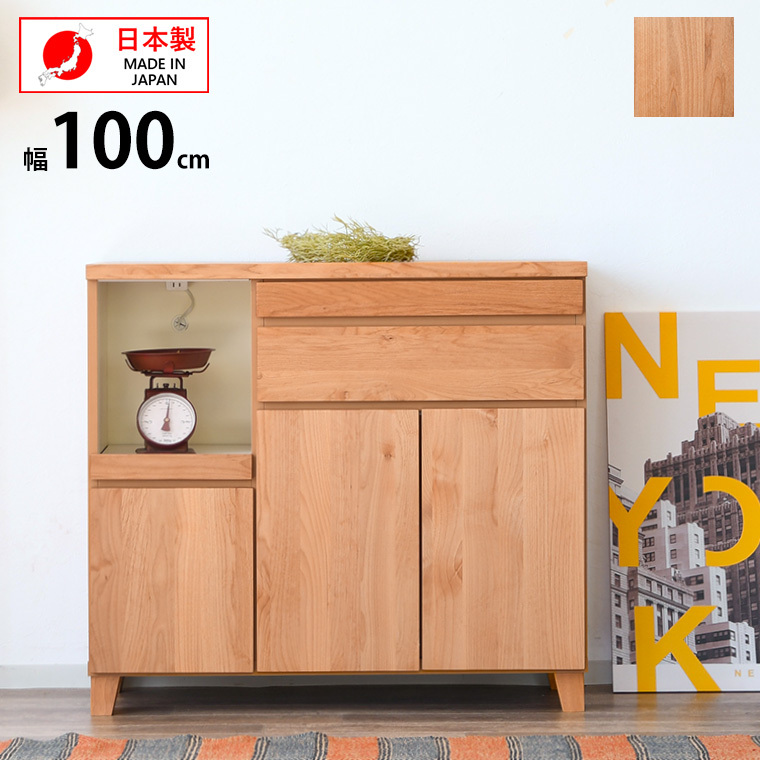 食器棚 レンジボード キッチン収納 レンジ台 幅100cm ロータイプ 開き戸 モイス加工 可動棚 おしゃれ 木製