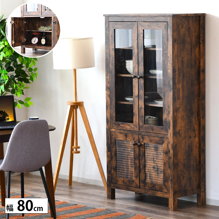 食器棚 幅80cm おしゃれ ハイタイプ キッチン収納 ガラス扉 木製 開き戸 可動棚 モダンスタイル