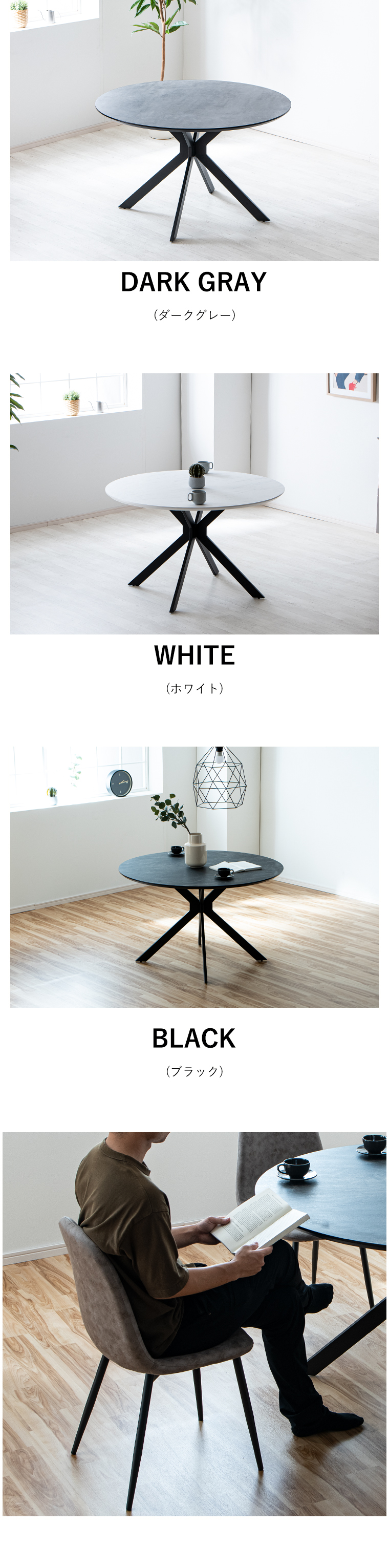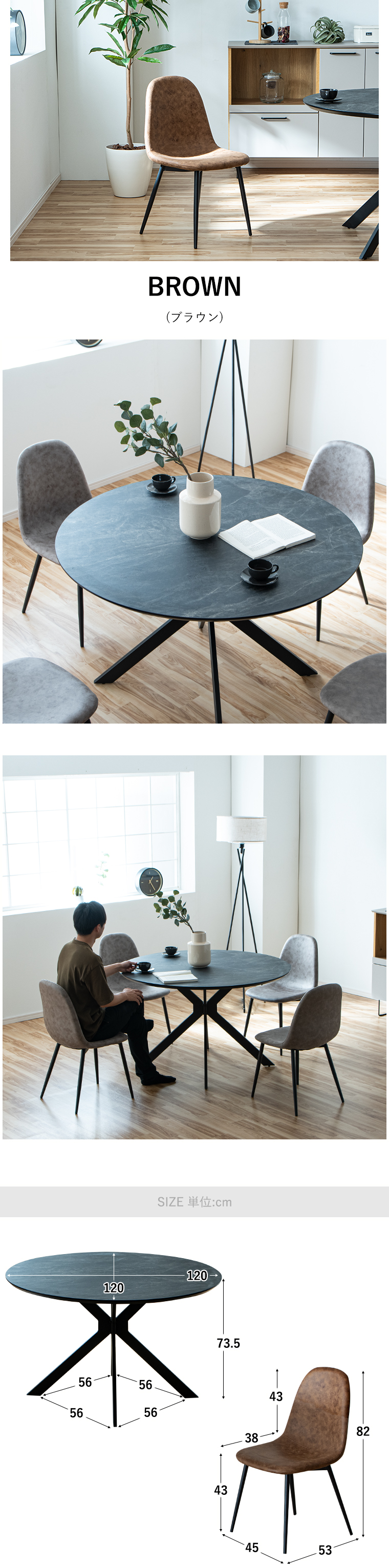 | サイズ | テーブル/幅120×奥行120×高73.5cm チェア/幅45×奥行53×高82cm(座面高43) |