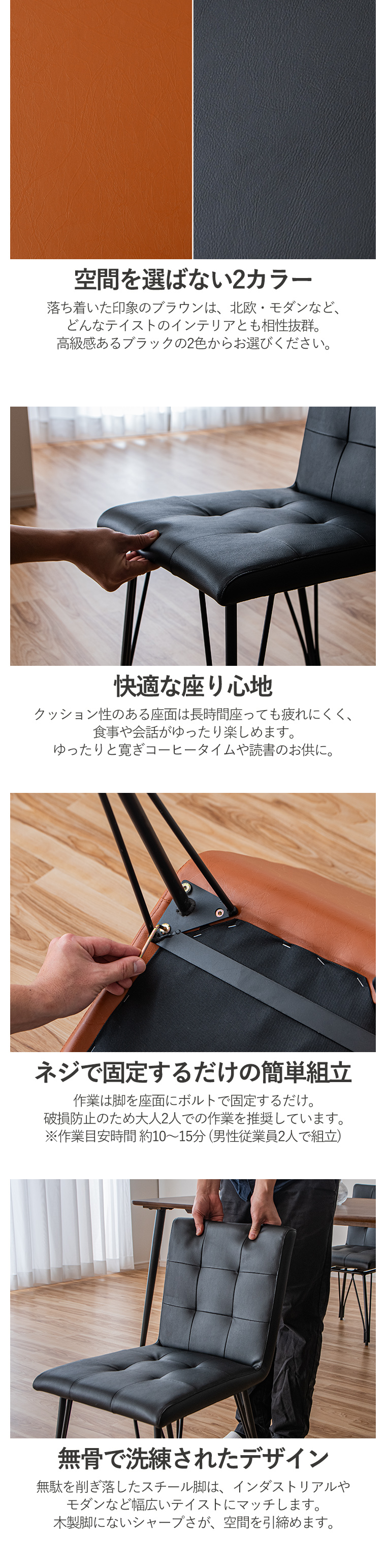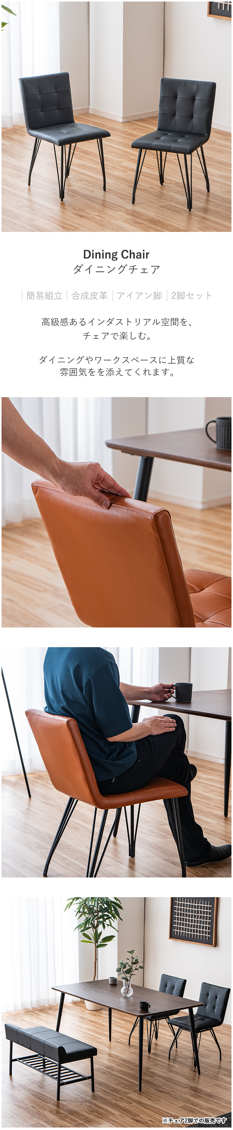 【10%OFFクーポン 4/18&4/19限定】ダイニングチェア 2脚セット 北欧家具 おしゃれ 椅子 チェアー ビンテージ 幅40cm 4本脚 スチール脚 ダイニング 食卓