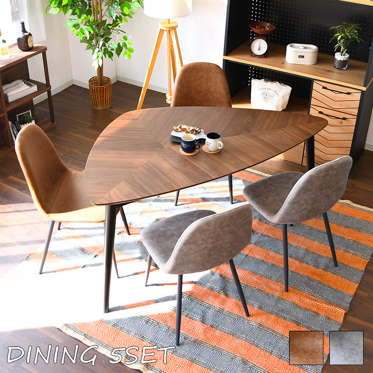 | ・ダイニング5点セットです ・幅150cmダイニングテーブル ・木の葉テーブル ・ウォールナット突板を木の葉をイメージした寄張りで仕上げました ・ビンテージ風チェア ・座り心地もよくスマートなデザインです ・イスの色を選べる ・お気に入りの場所でよい時を ・変形タイプの三角形テーブル ・3本脚がスマートな印象を与えてくれます ・落ち着きある空間に ・ヴィンテージ感ある座面 ・それをすっきりと引き締めるスリムなブラックスチール脚の組合せがセンスのあるダイニング空間を演出します | |