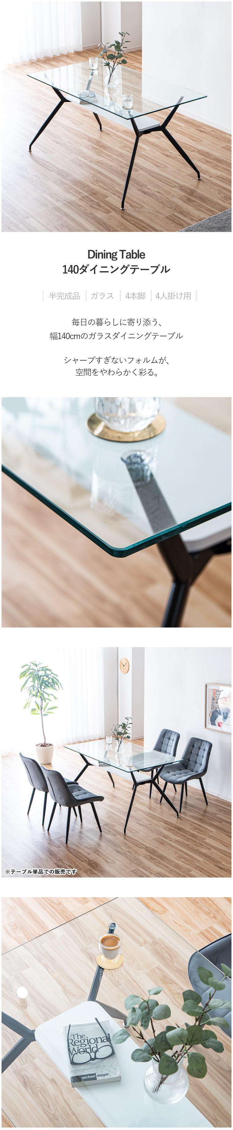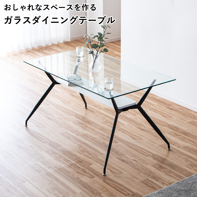・テーブル単品商品です ・幅140cmダイニングテーブル ・デザインだけでなく座り心地にもこだわりを ・おしゃれなテーブルでワンランク上のダイニングに ・おしゃれなテーブルとチェアでワンランク上のダイニングに ・天板には強化ガラスを使用しており通常のガラスより強度が強く耐久性にも優れています ・ガラストップゆえの気品 ・全体的に線の細いデザインと透明なガラスでお部屋に圧迫感を与えることなく存在感のみが際立ちます