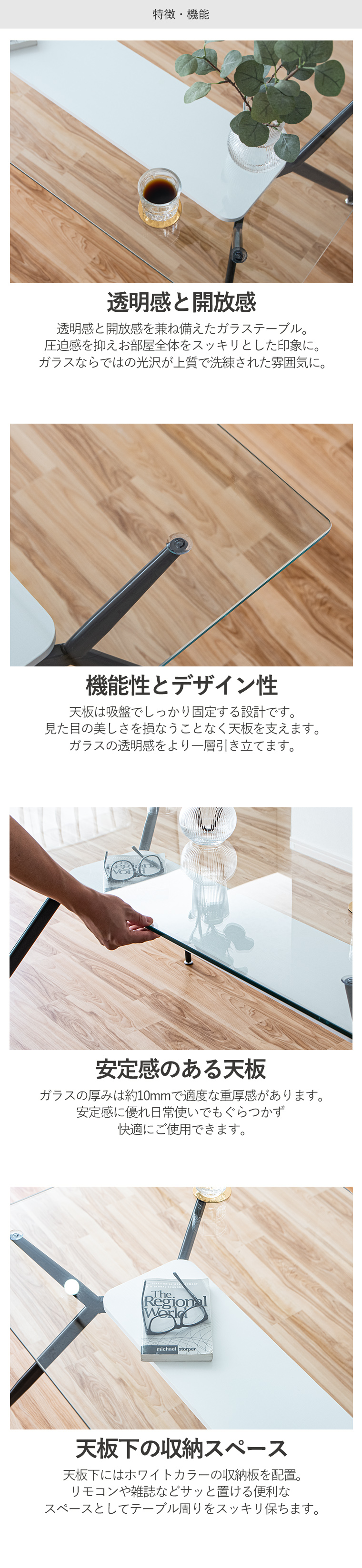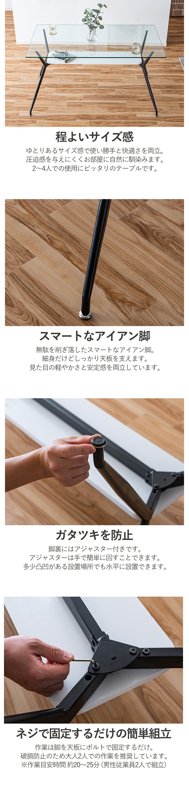 | 材質 | 天板/強化ガラス 脚/スチール製 |
