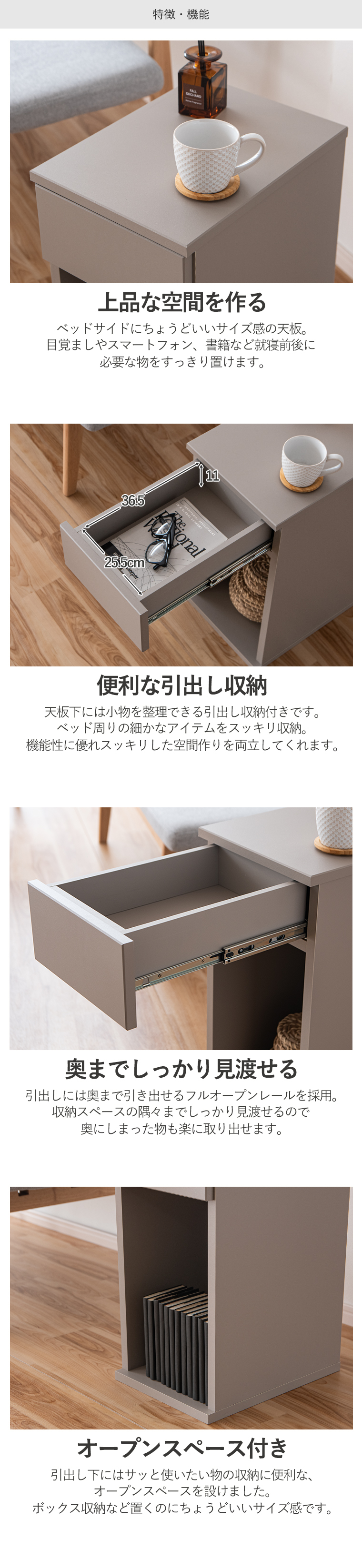 ナイトテーブル 引出し サイドテーブル キャビネット 完成品 収納 ベッドサイド ベッド横 30cm 日本