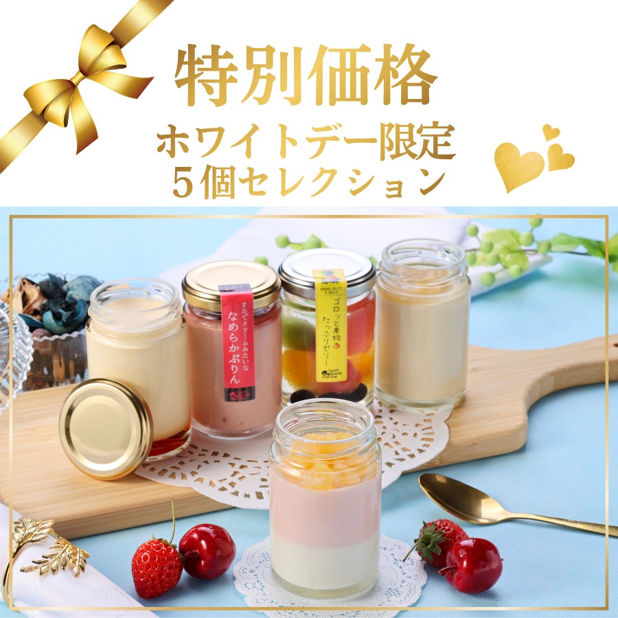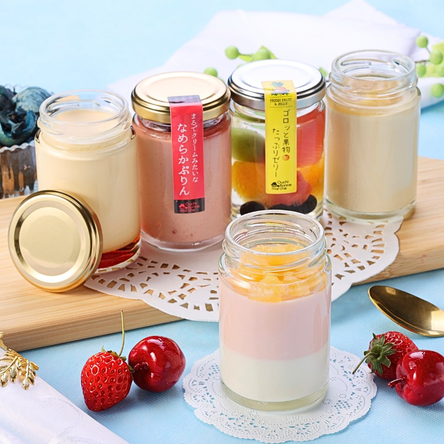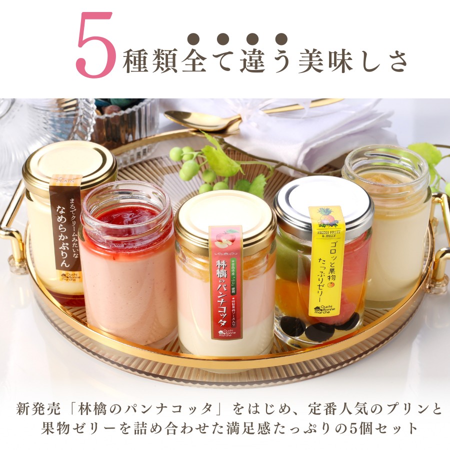 【セット内容】 | 5個入/「プレーン」「いちご」「バナナ」「林檎のパンナコッタ」「ゴロッと果物たっぷりゼリー」 |